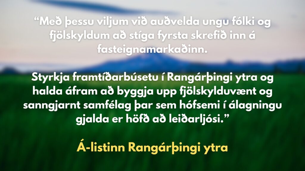 Á-listinn í Rangárþingi ytra hefur lagt fram tillögu um stuðning vegna kaupa á fyrstu íbúðareign í sveitarfélaginu. Tillagan var lögð fram á fundi sveitarstjórnar þann 12. nóvember 2025. Ekki er vitað til að tillaga af þessum toga hafi verið lögð fram áður.
